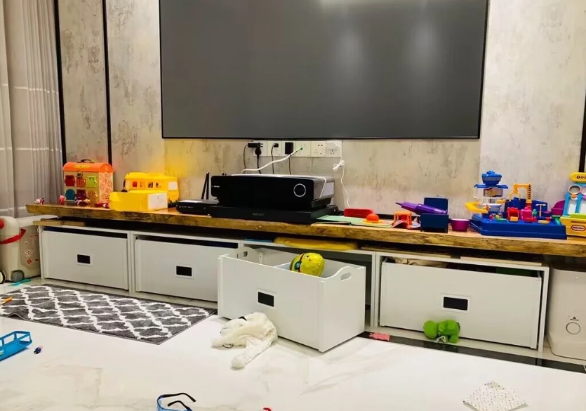 像小孩子的一些玩具就可以放在抽拉的电视柜中,让孩子可以养成独立自主的收纳习惯,减轻我们的杂物。